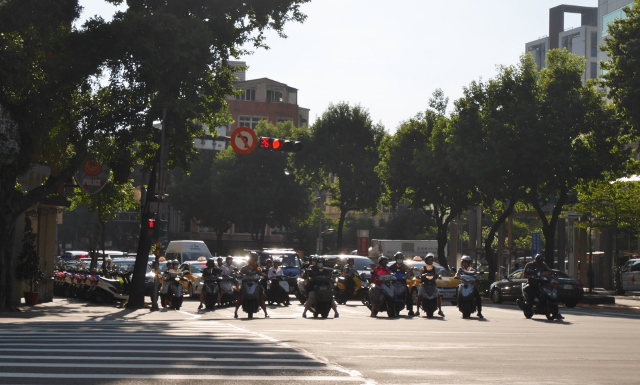 車用の赤信号の横にも、秒数が。大通りはバイクがいっぱいです。