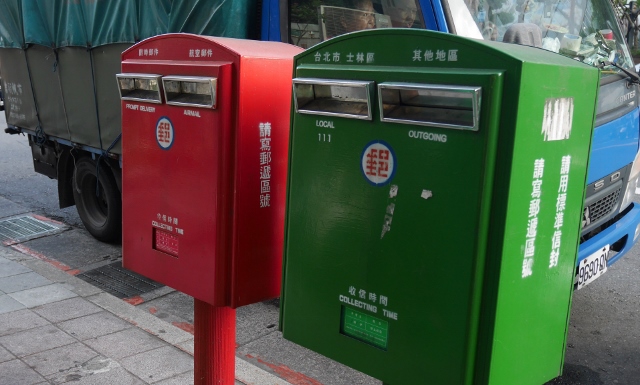 ポストは赤と緑。赤が遠方や海外便で、緑が市内への郵便用のよう。
