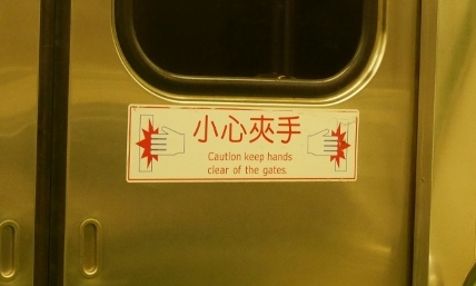 「手を挟まないよう気をつけて」意味はしっかり伝わってきます。