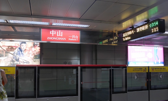 電車(MRT)に乗ろうと改札をくぐると「← 月台」の文字。「月台」は、ホームだ。そしてホームに備えつけられたドアには「小心夾手」とある。「小心」は気をつけてということらしい。電車に乗れば優先席には「博愛座」。