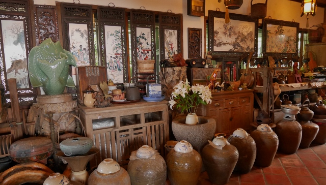 店のなかには、骨董品のようなものがいっぱい並んでいます。