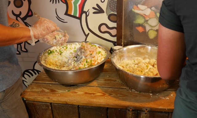 すぐ裏に、調理する人がいます。奥にも厨房があるようでした。