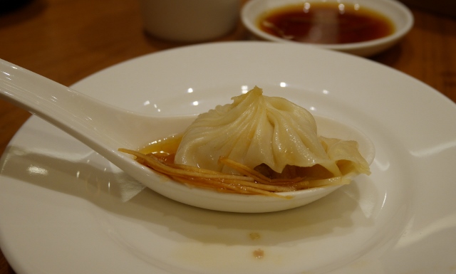 醤油とお酢につけた針生姜と一緒に、レンゲでいただきます。