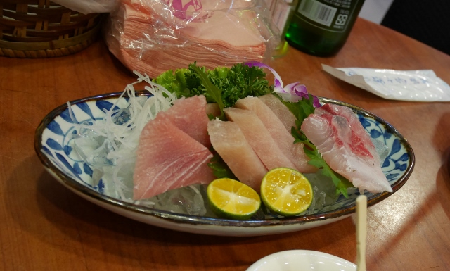 お刺身。鮪とハマチと・・・あとは何だったんだろう。