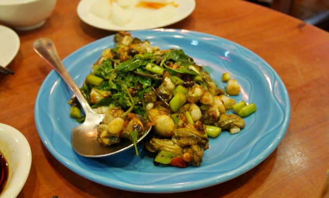 牡蠣をオーダーしたら、野菜と炒めたものが出てきました。