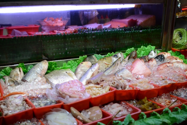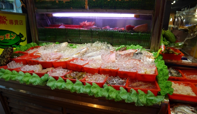 商店街にあった海鮮居酒屋は、まさに魚屋の店先のよう。