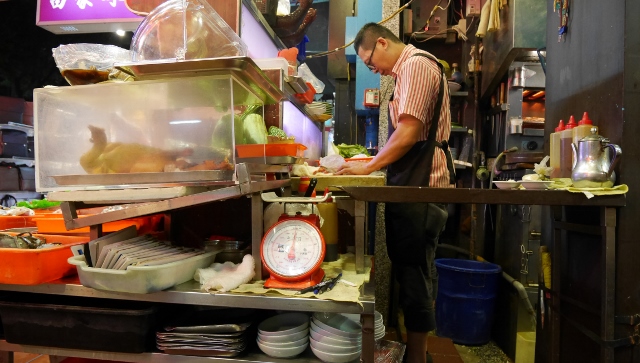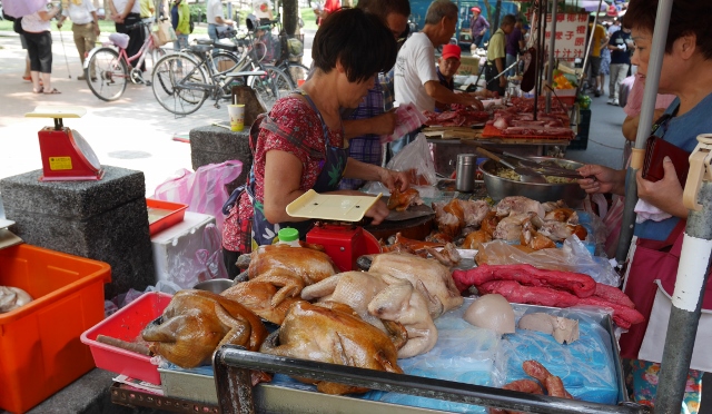 鶏の丸焼きを、切り売りしていました。