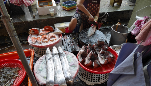大きな包丁で魚をさばく女性。迫力ありました。