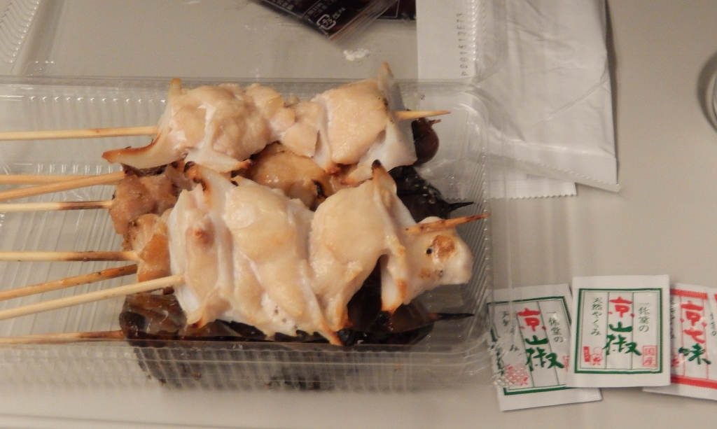 ナンコツやももには七味をかけて、たれのレバーには山椒をかけて。