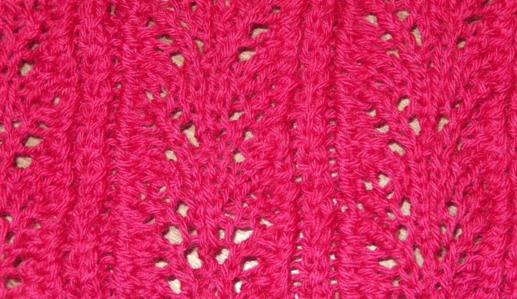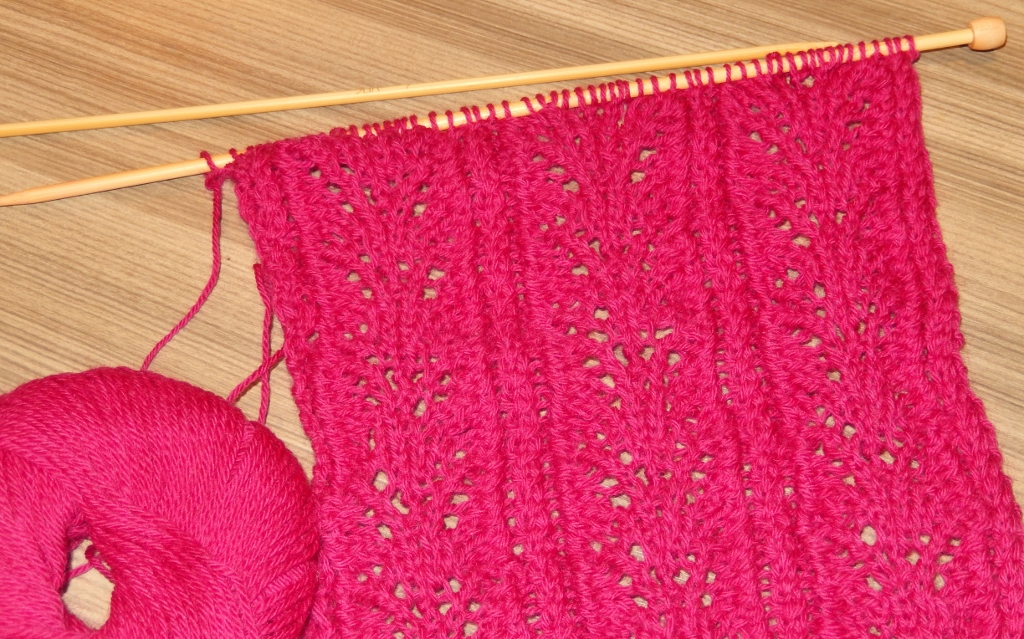 ラズベリーの明るく濃い色で、手にとるたびに楽しくなる。上手にできたら、ある女性に着ていただこうと思っている。上手に、というのは、家で着ていて、宅配便が届いたときに恥ずかしくなく玄関を開けられるくらい、ということだが。いやいや。上手にどころか、できあがるのか? というところに問題はあるのかも知れず、すべての段ごとに目を減らし増やしていく模様編みは、わたしにとっては難解で、編み始め、弱音ばかり吐いていた。