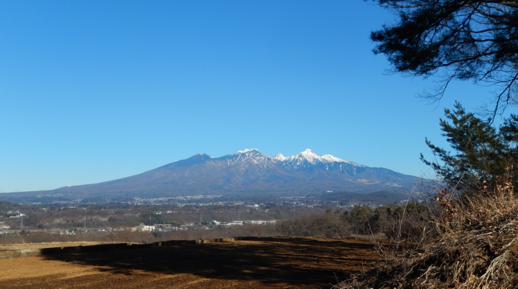 雲一つない翌朝の八ヶ岳です。赤岳が白く凍っています。