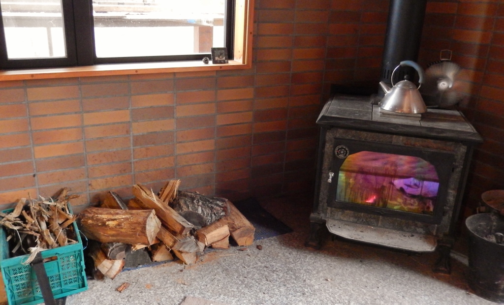 薪ストーブの周りは、いつも雑然としています。