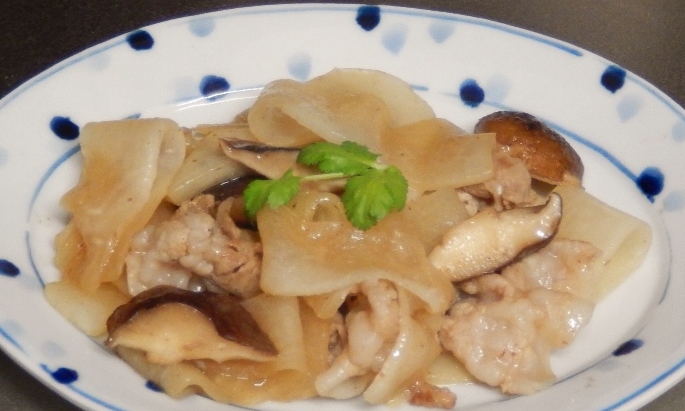 最近ハマっているのは、薄切りにした大根とキノコと豚肉の炒め物。