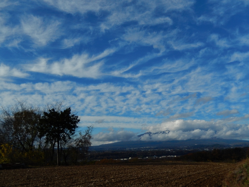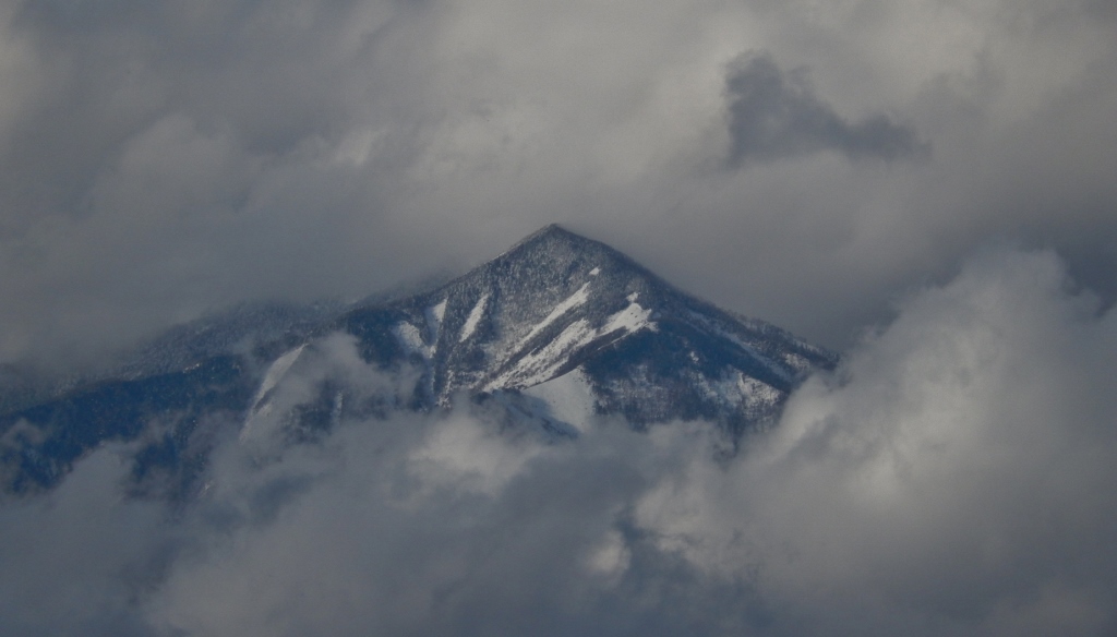 先週、八ヶ岳下ろしが吹き、青空の下、雪が舞ってきた。