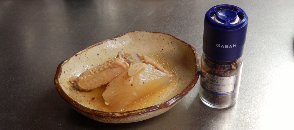 韓国風大根の煮物にぴったり。味つけは鶏ガラスープと醤油、酒、酢。