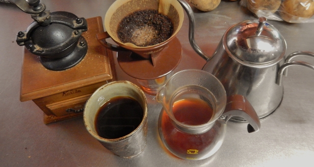 豆を挽いてまた、そしてドリップしてさらに匂いたちます。