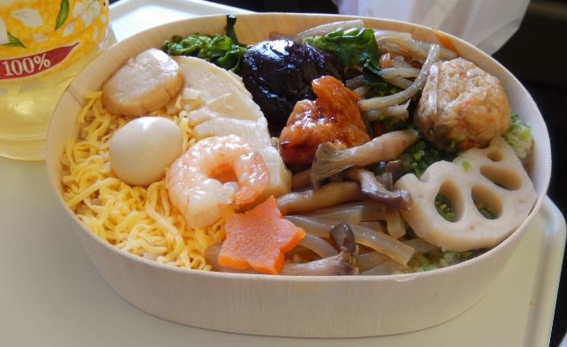 ちなみに盛岡駅などで販売されているのは「南部わっぱ飯」岩手県南部地方をイメージした駅弁で、具材も形も違う。海のモノ率が高いようだ。