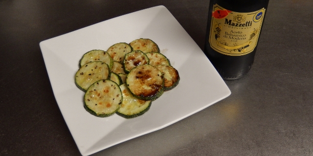 やわらかく焼き上がったズッキーニに、バルサミコ酢をかけて。