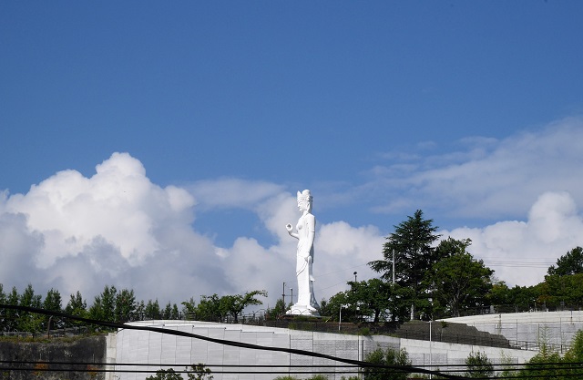 ホームから見上げた観音様は、南の空を眺めていらっしゃいました。