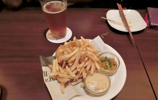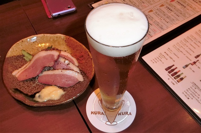 お参りも済んで、名物の焼き牡蠣にビールで喉を潤しました。