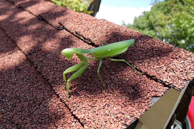 ポストの上には、ミントとよく似た色合いのカマキリくん。