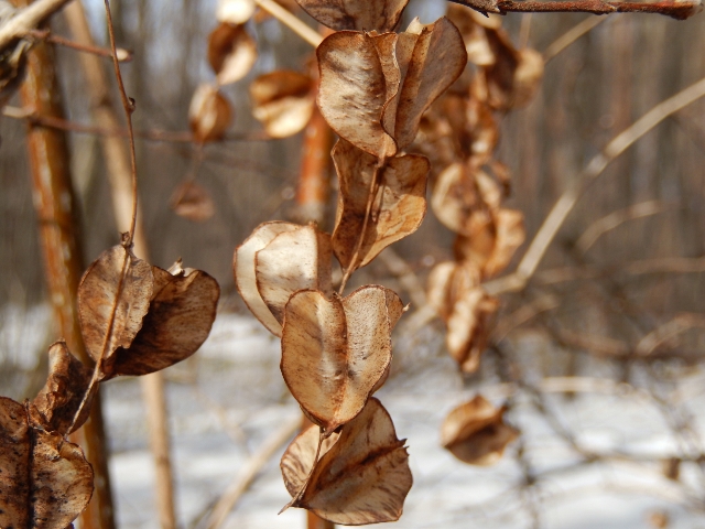 のんびりとした気持ちで歩くと、枝に巻きついたまま枯れた蔓に、種を落としたあとの実がドライフラワーのように綺麗に乾燥している姿に目を魅かれた。