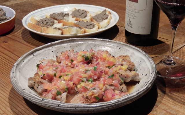 夫は「レバーペースト」わたしは「ポークソテーonビネグレットソース」
