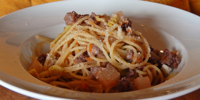 夫は、鹿のラグーソース。大根が入っていました。