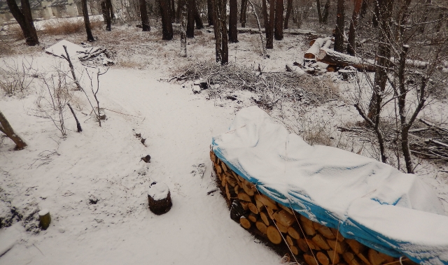 雪の落葉松林で