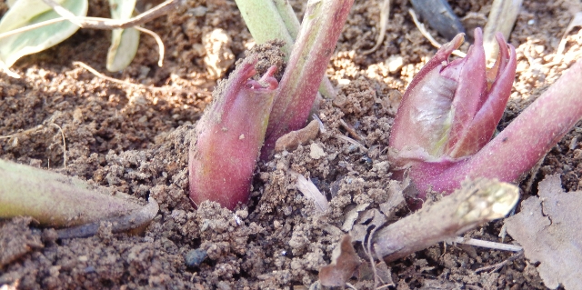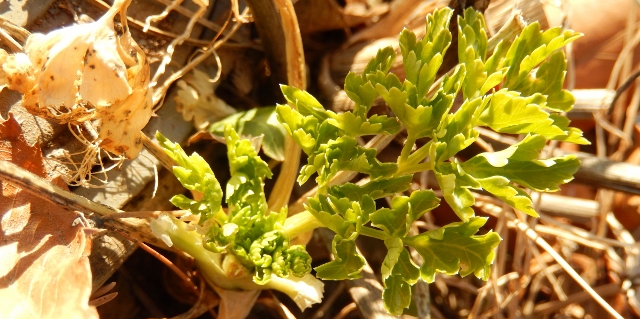 クリスマスローズの花芽に、陽が当たるよう、丁寧に枯れ葉を取り除いた。