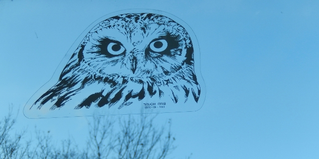 「ああ、この顔だ!」夢のなかのフクロウは、窓に貼ったバードセイバーに、そっくりだったのだ。バードセイバーとは、野鳥が窓にぶつかる事故を防ぐために窓に貼るシールで、その顔は、もう何年も毎日見ているものだった。