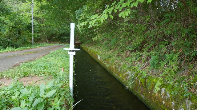この堰沿いが、区と区の境い目になっています。