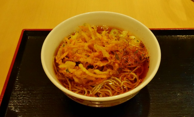 JR系列の『いろり庵きらく』が入り、内装も一変。当然だがメニューも蕎麦も変わった。うれしいのは、かき揚げを店内で揚げていてかりかりなこと。べたっとしたかき揚げを口にするのは、立ち食い蕎麦屋とて悲しいことである。