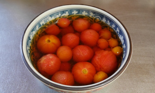 夏にトマトを食べれば、医者いらずという意味だろう。それだけ栄養価が高いということか。まさに栄養満点と、自らアピールしているようなトマトをいただいた。プチプチトマトだが、枝に鈴生りになっている。捥ぐと、まだまだ枝にくっついていたかったんですとでも言うかのように、ぷちっとはじける。そのまま口に入れると。甘い。甘いが、青臭いような野菜の味がしっかり残っている。つんと葉の、茎の匂いもする。その匂いは土の匂いとも通じている。