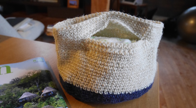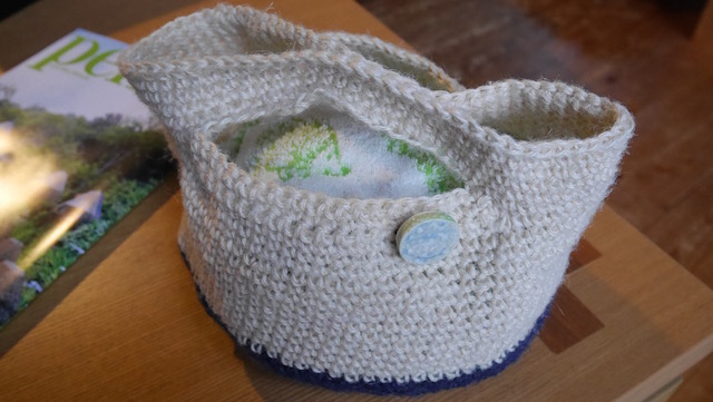 夏糸で、バッグを編んだ。普段使いの小さなものだ。