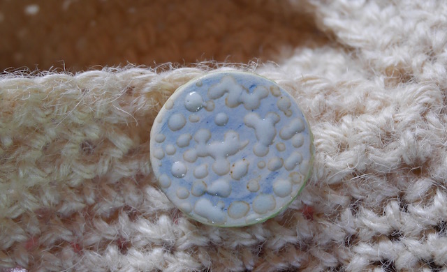 末娘の大学の学園祭で購入した、手作り陶器のブローチをつけて。