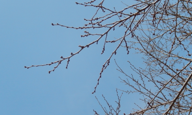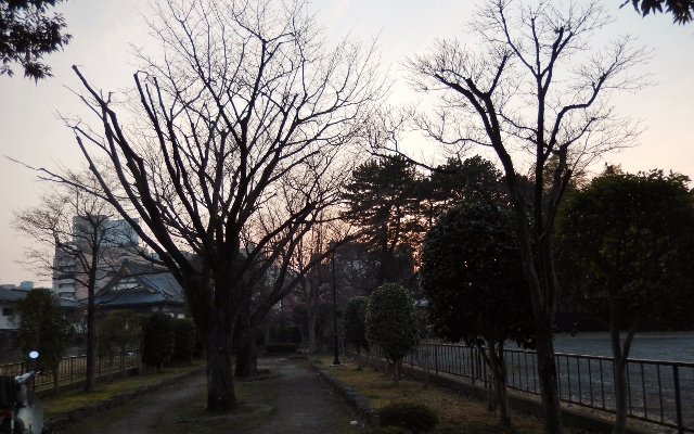 暮れゆく仙台の早春。桜の並木でしたが、まだ春は遠いようです。