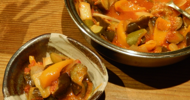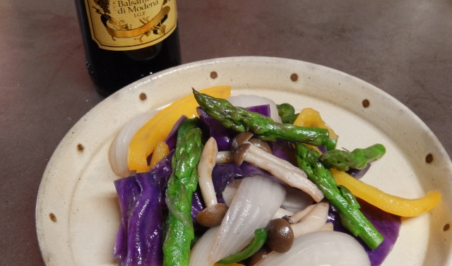 自分だけのために、手間を惜しまず料理するほど、マメではない。綺麗でちょっと贅沢な、野菜達。ザクザク切って下ゆでも何もせず、炒めてみた。オリーブオイルに、にんにくも大きめのざく切りで、わいわい炒めた。味付けは塩胡椒。皿に盛ってから、お好みでバルサミコ酢をかけて、出来上がり。何と簡単。しかし、何とも贅沢。