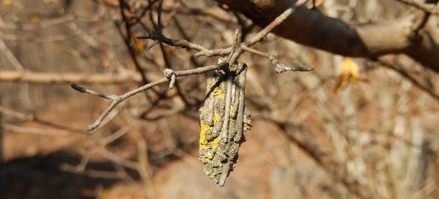 ミノムシアートは綺麗だ。整然としていて、人間の家で言うなら、まるでログハウスのよう。同じ太さの枝をびっしりと並べている。几帳面なのに四角四面ではない、何ともお洒落な家だ。ある意味、ログハウスよりお洒落だとも言える。見習いたいものだ。