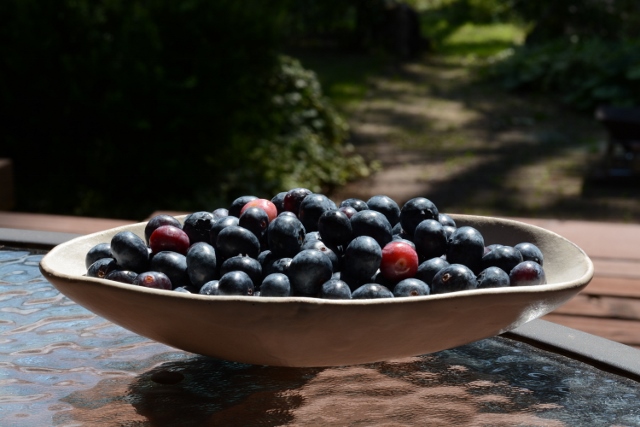 庭のブルーベリーを収穫し、口に入れるなり夫が言った。