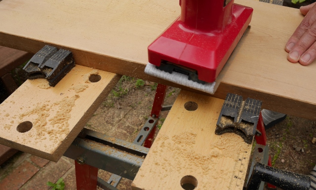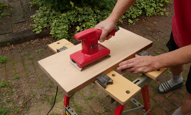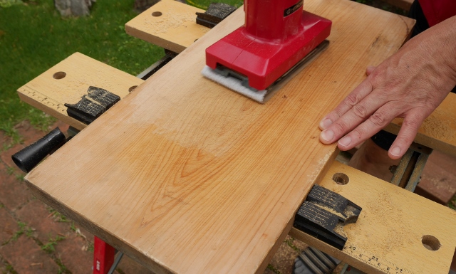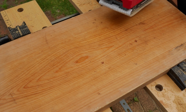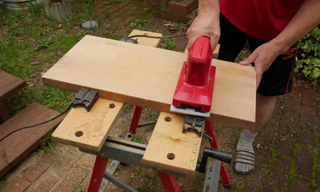 休日の朝、夫がサンダーでまな板を削ってくれた。