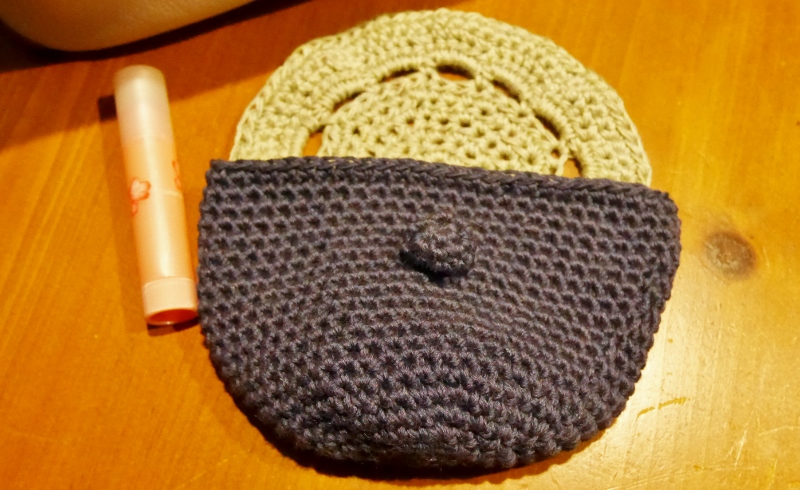 ちっちゃなポーチです。足首ウォーマーの残り糸で編みました。