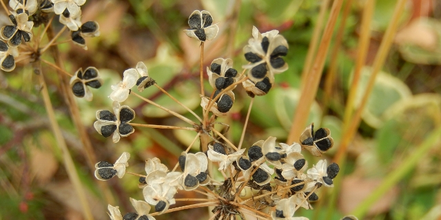 今年いただいたニラの苗が付けた種。朝顔の種と似ています。