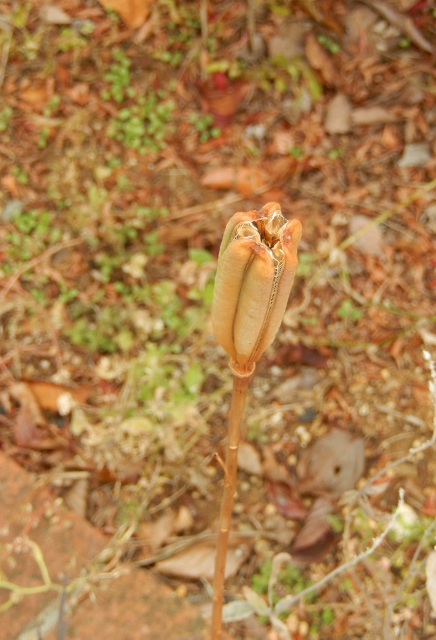 庭で種を作り終えたテッポウユリが乾燥し、ドライフラワー化している。