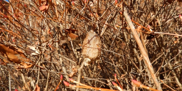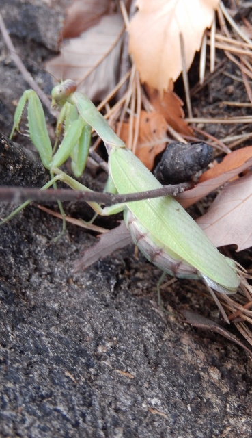 出産間近のカマキリ母さん発見。