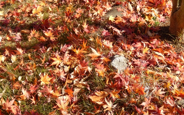 薪小屋の隣の紅葉の下は、綺麗に絨毯が敷かれていました。