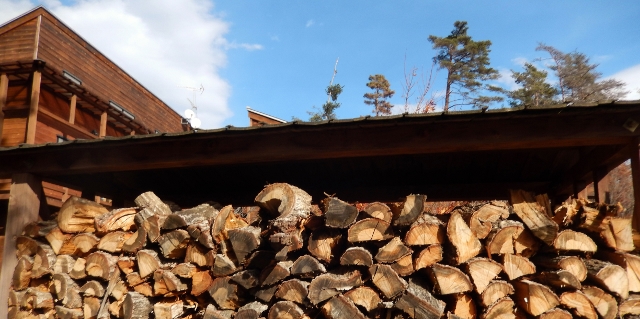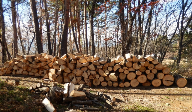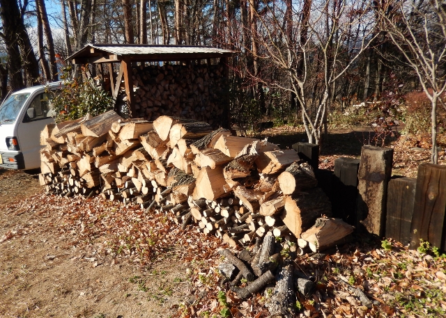 それがまぁ、再来年以降に使う、薪なのだ。八ヶ岳下しに吹きさらし、よく乾いた頃に、ようやくいい薪になる。