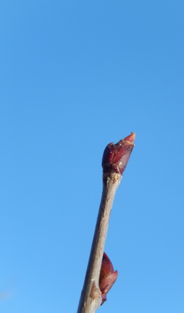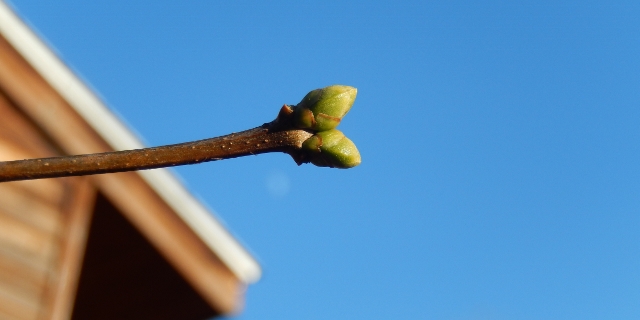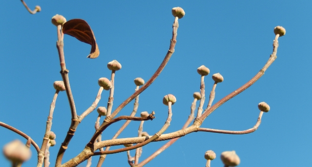 そのユリが種ばかりになった初冬の庭で、テッポウユリの蕾を見つけた。小さく膨らんでいる。可愛い。いちばん先に咲いた花が種を落としたのだろう。1年待つことをせず芽を出し、花をつけたのだ。