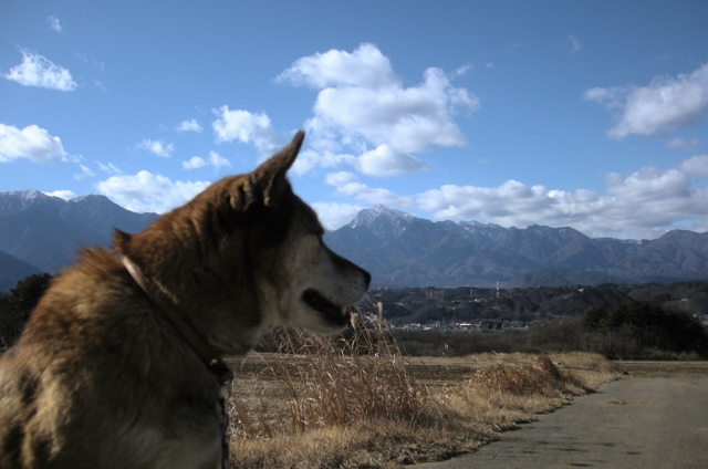この道は、おとーさんとよく歩きました。甲斐駒が、綺麗ですねぇ。