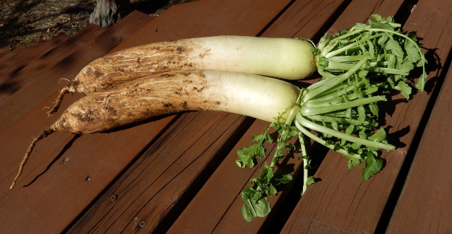 翌朝、玄関には大袋に入った葉つき大根がどっさり。傘地蔵を連想してしまうが、こちらはいただくばかりである。